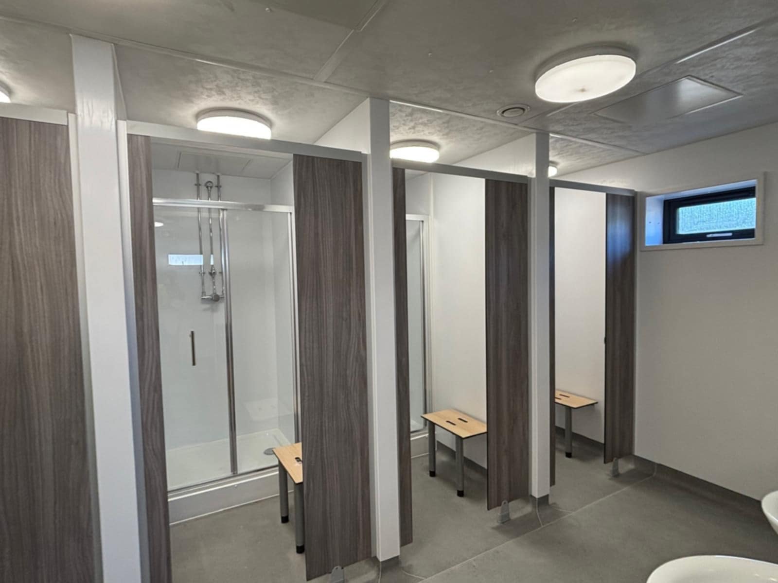 Bloc cawodydd eco-gyfeillgar newydd ym Mharc Gwledig Pen-bre