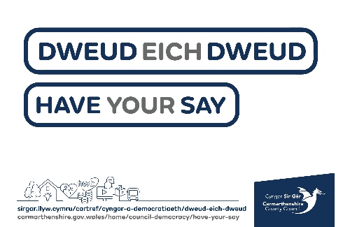 Gallwch chi ofyn am gopïau papur o'r ymgynghoriad yng Nghanolfannau Hwb Rhydaman, Caerfyrddin neu Lanelli neu drwy Hwb Bach y Wlad.